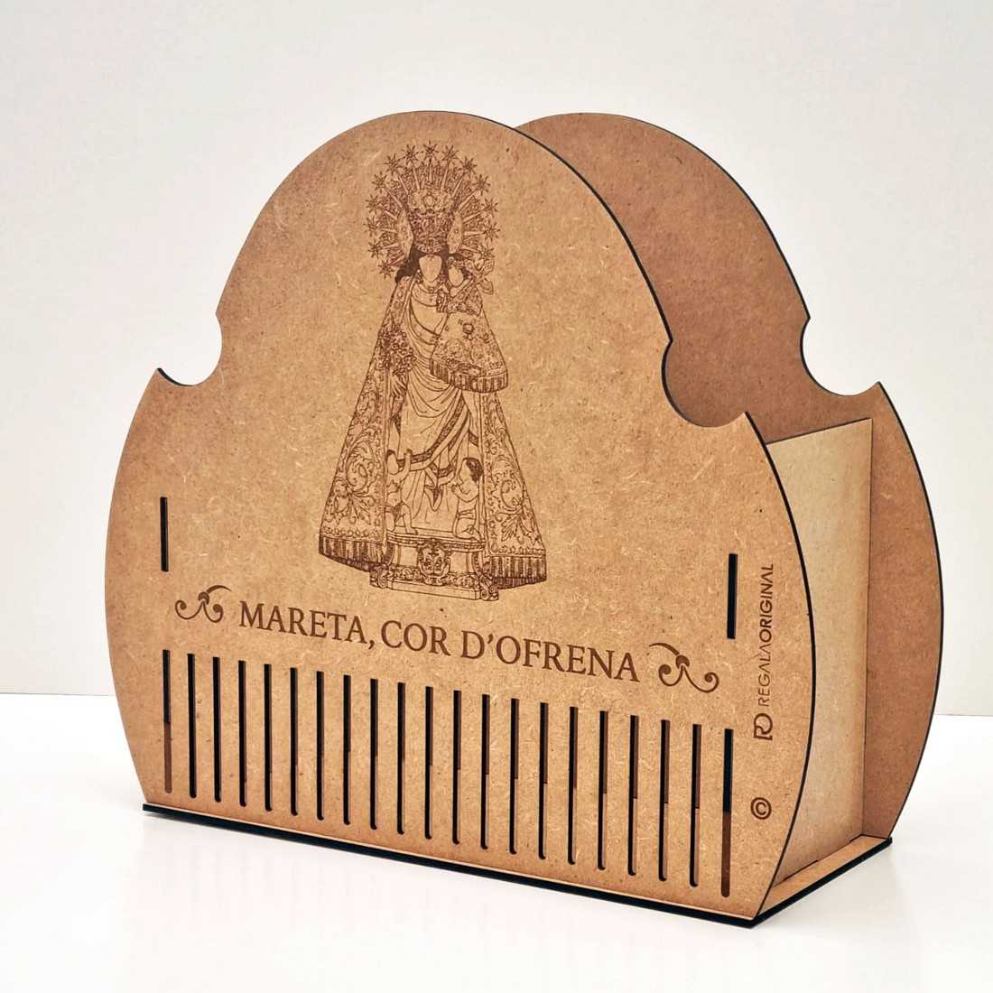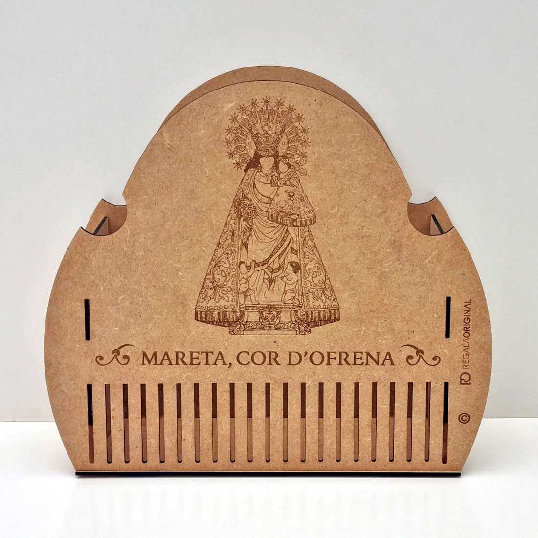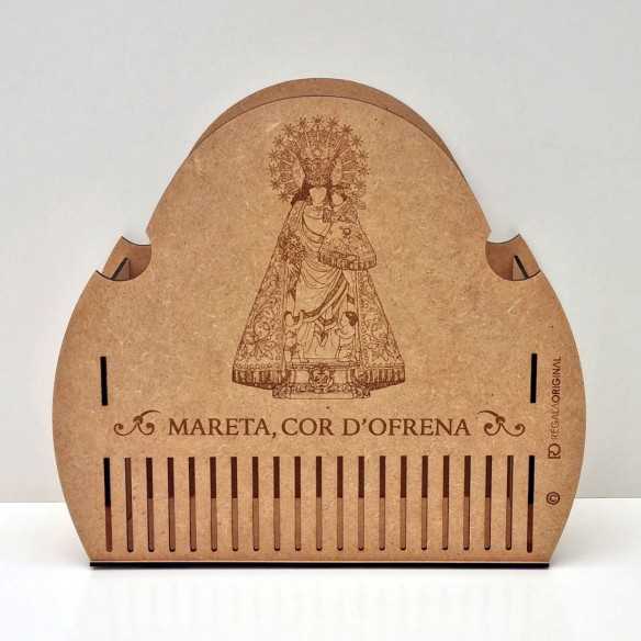 <p style="box-sizing: border-box; margin-top: 0px; margin-bottom: 0.8rem; color: rgb(119, 119, 119); font-family: Lato, sans-serif; font-size: 14px;">Caja con forma de peineta fallera en tamaño grande. Combina la calidez de la madera con la devoción de nuestra tierra, incluyendo el detalle de la Geperudeta y una frase como "Mareta, cor d'ofrena". Perfecta para hacer un regalo especial a tu fallera.</p>